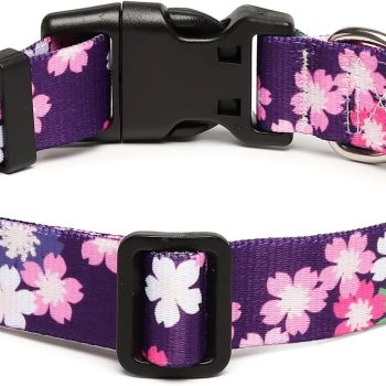 Cotton Dog Collar Cute Dog Collars for Small Medium Large Dogs Purple Floral Colored Options Soft and Fancy Pet Collars for Girls Flower Pattern for Girl Dog Collar M