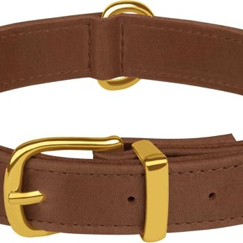 Genuine Leather Dog Collar – Heavy Duty Adjustable Soft Padded Pet Collars for Small Medium Large Dogs Breed – Black Green Brown Pink Red Blue (Cognac, S, 9″-12″ Neck Fit)