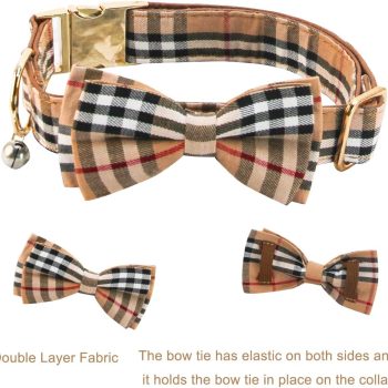 Dog Collar with Bow Tie- Adjustable pet Collar for Dogs with Metal snap Fastener Collar, Stylish Pattern for Small Medium or Large Boy and Girl Dog and Cat