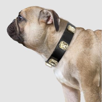 Handmade Black Vegan Leather Dog Collar with Large Crystal Accents for Medium Large Dog, Adjustable Breathable Leather Puppy Collar with Alloy Buckle. Classic Pet Collar. M