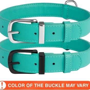 Leather Dog Collar 12 Colors Soft Padded Pet Collars Small Medium Large Puppy Green Black Pink White Red Blue Purple (Mint Green, Size M Neck Fit 12″-14″)