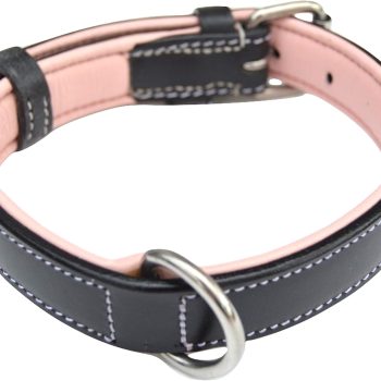 Small Leather Dog Collar, Padded for Comfort, Black and Light Pink – Great for Female Dogs