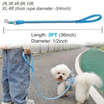 Reflective Dog Leash Strong Nylon Rope Braided Heavy Duty for Large and Medium Small Dogs Walking Training Leads (Sky Blue, 3ft * 1/2″)