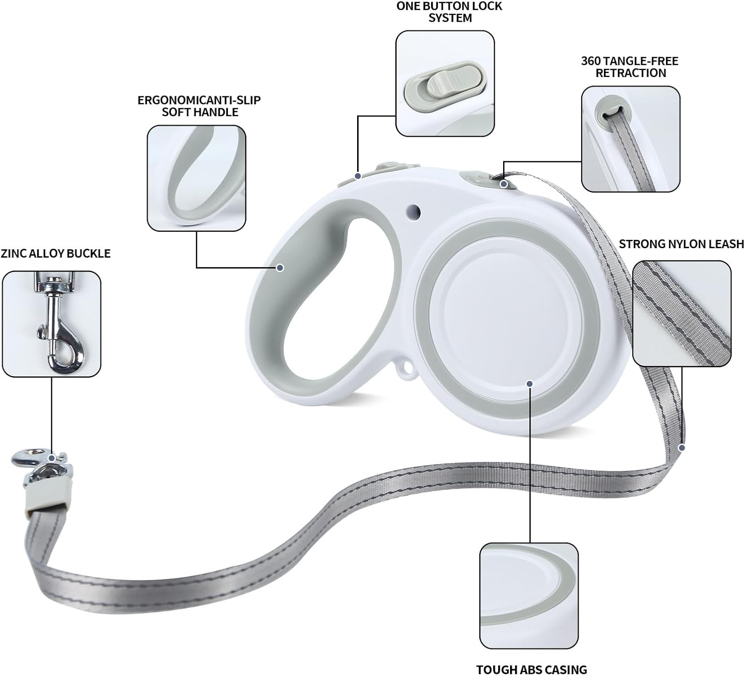 10 Ft Retractable Dog Leash, 360° Tangle-Free Heavy Duty Great Leashs for Dog up to 44lbs with Anti-Slip Handle, Dog Walking Leash Suitable for Small Dogs (White,S)